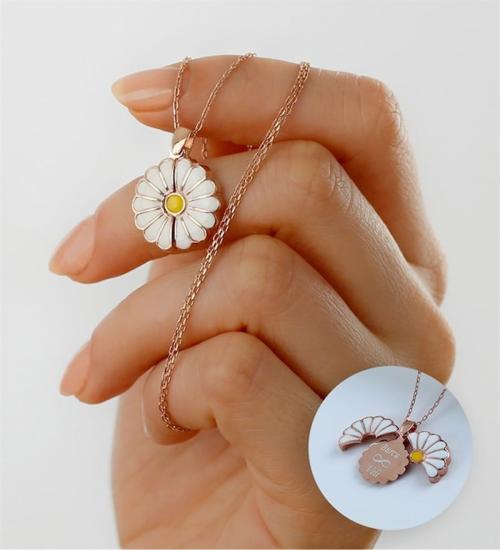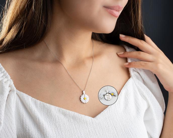 Açılır Papatya Çiçeği Kişiye Özel 925 Ayar Gümüş Aşk Kolyesi