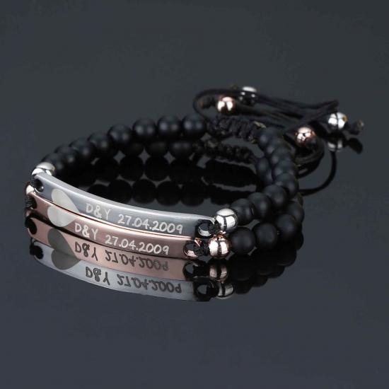 Kişiye Özel Makrome Boncuklu Çift Çelik Bileklik