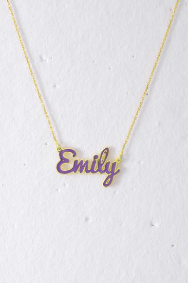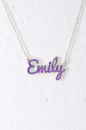 Kişiye Özel Mor Mineli İsimli 925 Ayar Gümüş Kolye