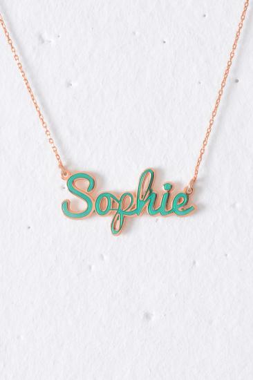 Kişiye Özel Yeşil Mineli İsimli 925 Ayar Gümüş Kolye