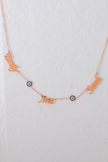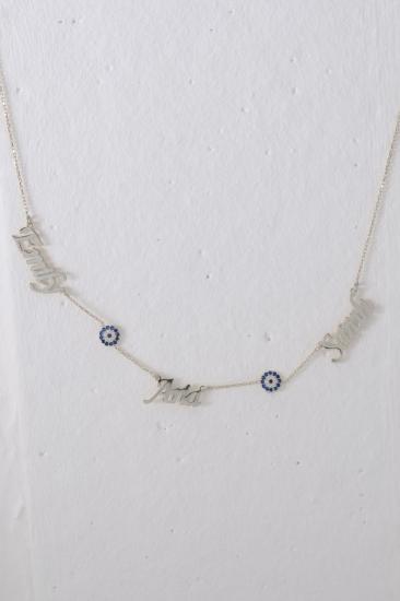Kişiye Özel 3 İsimli Nazarlı 925 Ayar Gümüş Kolye