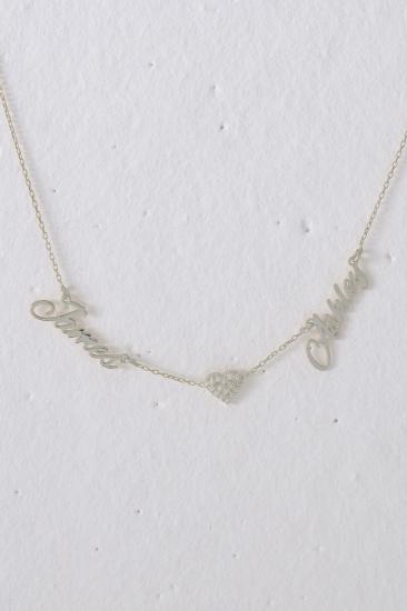 Kişiye Özel Swarovski Taşlı İki İsimli 925 Ayar Gümüş Kolye